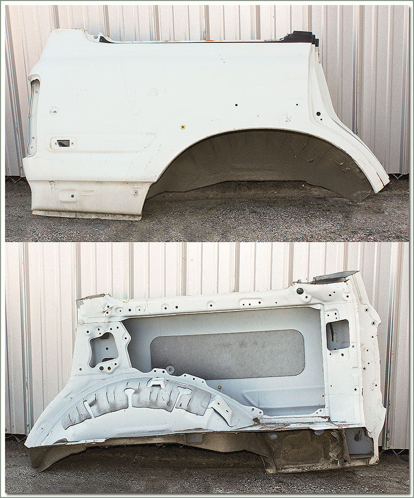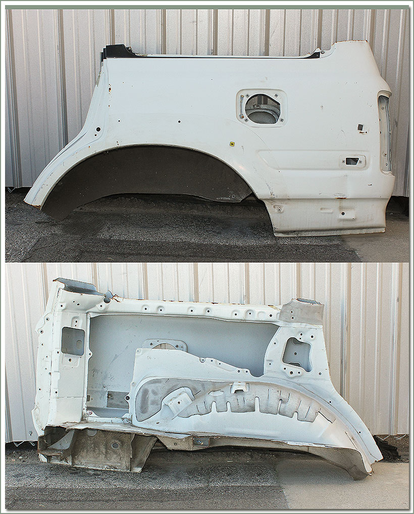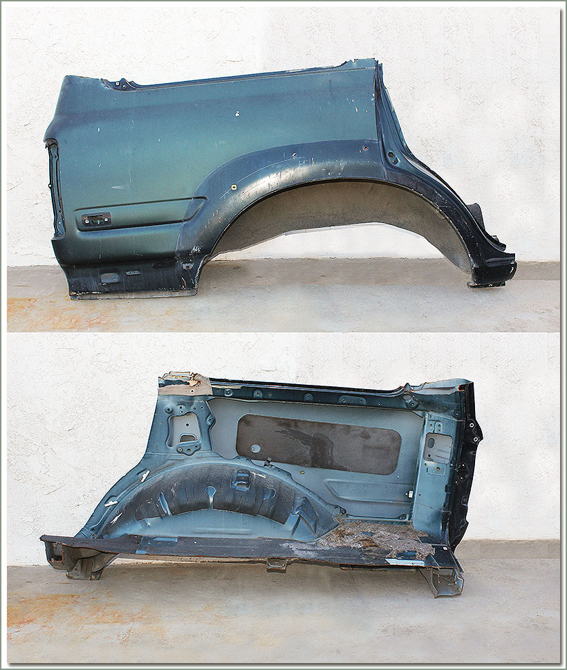 USED Rear Panel, Left Side Rear Fits 1/95-1/98 FZJ80 with molding. Panel is in good condition. Includes dogleg. C and D pillars cut level with window edge. (an Additional Handling Charge of 60.00 is already included in price) |