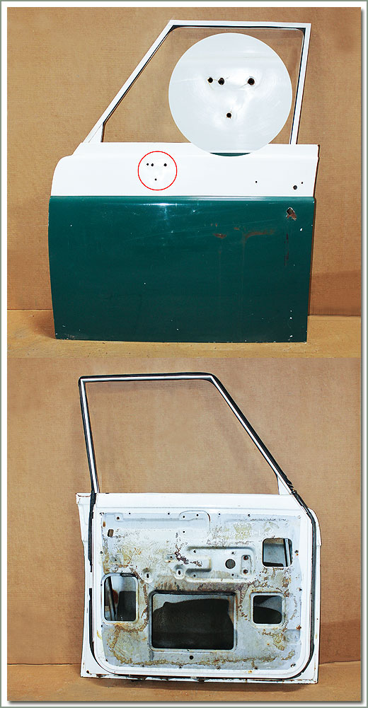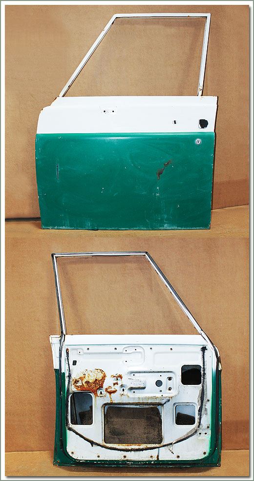 USED Left Front Door Fits 9/73-9/77 FJ55 Door is good condition. Has small holes drilled around mirror mounting location. Sold as shell only. This part is discounted $55.00 (an Additional Handling Charge of 40.00 is already included in price) |
