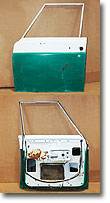 USED Door, Left Front Fits 1963-1967 FJ45LV Wagon. Door has had lower section of outer skin removed. Upper frame included, otherwise sold as shell only. This part is discounted $500.00 (an Additional Handling Charge of 50.00 is already included in price) |